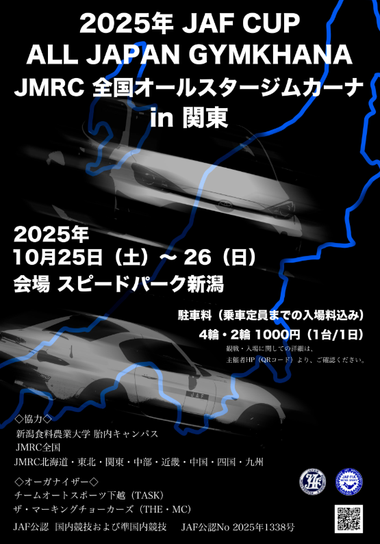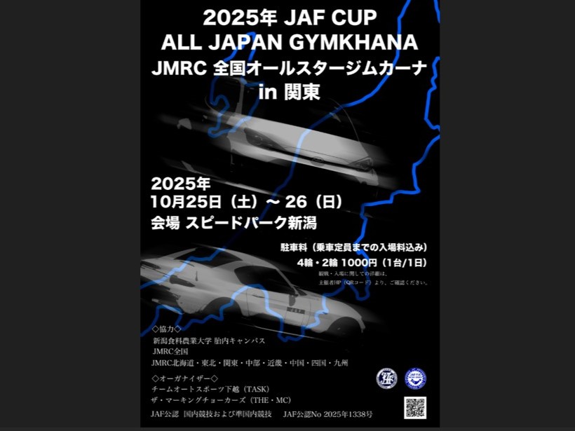 2025年10月25日(土)・26日(日)の2日間、新潟県内で初開催となる「2025年JAFカップオールジャパンジムカーナ JMRC全国オールスタージムカーナin関東」がスピードパーク新潟(胎内市)で開催されます。