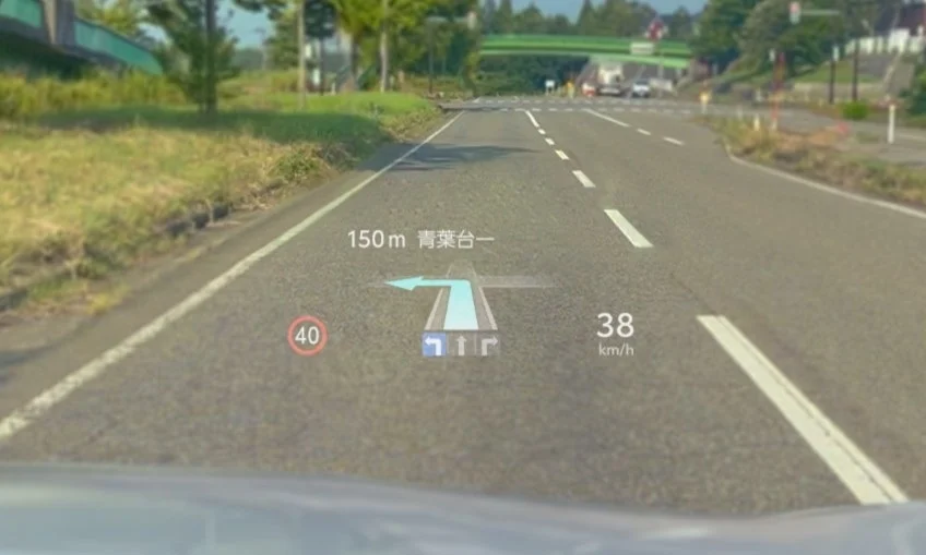 従来のHUDは平面的な表示が主流でしたが、この新技術はナビ情報などを奥行きのあるスロープ状に映し出します。