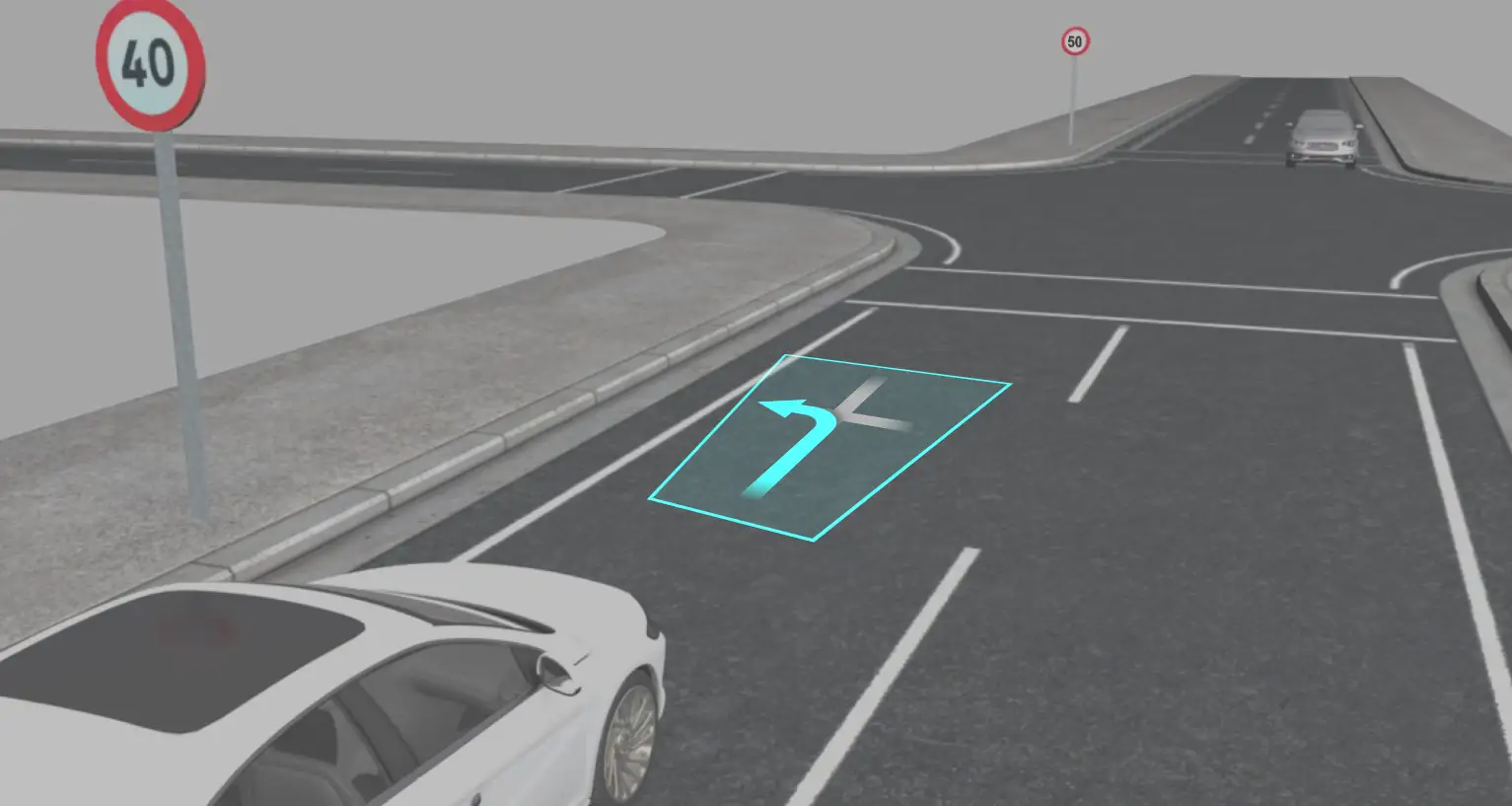 スロープ表示 イメージ(運転者の視線の先 数メートルに奥行のある虚像を表示)