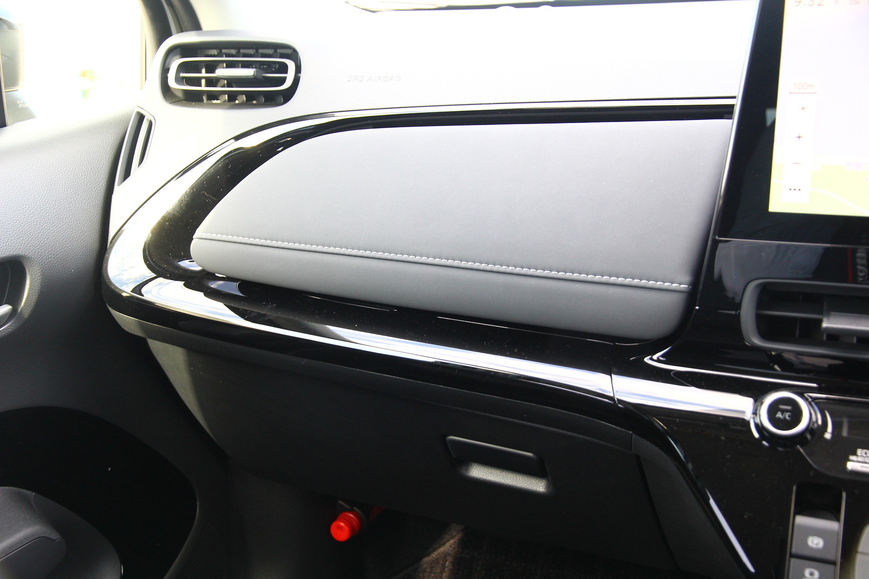 室内装備も充実しています。大型7インチマルチインフォメーションディスプレイや、センタークラスター下部のHDMI入力端子が標準装備されました。画面が見やすく扱いやすいですし、スマホの映像や音声を車内で手軽に楽しめます。助手席側ダッシュボードもハンマーヘッドっぽくデザインされています。